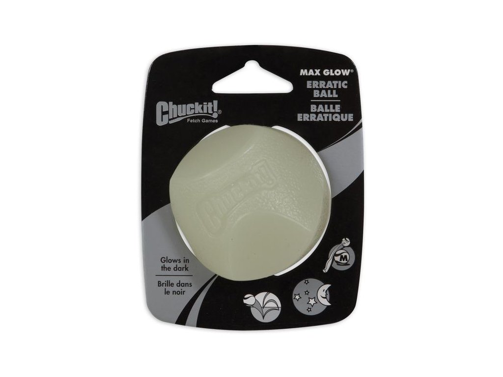 Míček svítící Glow Erratic je speciálně určený pro všechny aportéry, kterým při jejich oblíbené zábavě nevadí nedostatek světla a nebaví je ten stále stejný odskok. Míčky díky svému tvaru odskakují pokaždé jinak a Vašeho psa tak bude aportování ještě více bavit. Míček ve tmě výrazně svítí, snadno jej tak najdete Vy i Váš čtyřnohý kamarád. K tomu, aby míček svítil, jej stačí vystavit po krátkou dobu světelnému zdroji.