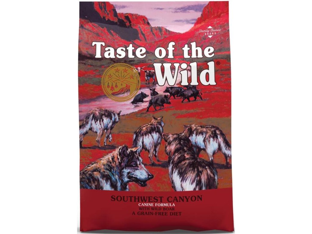 Americký divočák se odjakživa bál o své štětiny, když se proháněl skalnatým jihozápadním kaňonem. Mlsný vlk mu totiž nikdy nic nedaroval a v úzkém kaňonu lovil nekompromisně. Právě divočák, jakožto velmi unikátní zdroj divokých bílkovin a aminokyselin, je k zakousnutí v balení Taste of the Wild Southwest Canyon. Pro mlsné jazyky je přihozen ještě flák hovězího a sousto jehněte. Před obilovinami tu dostala přednost cizrna plná přírodních proteinů, vitaminů a minerálů. Pivovarské kvasnice poskytující nálož vitaminu B a skvěle přírodně zvýrazní chuť. Amerického divočáka ještě vyšperkovali sousedé z Kanady, kteří dodali omega-3 mastné kyseliny v podobě lněného semínka.
