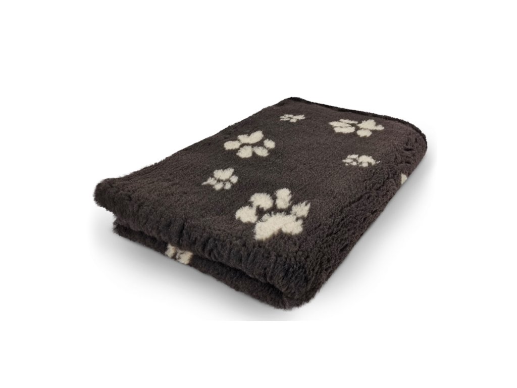 VetBed protiskluz/DryBed Extra premium deka pro psa, tmavě hnědá - béžové tlapky